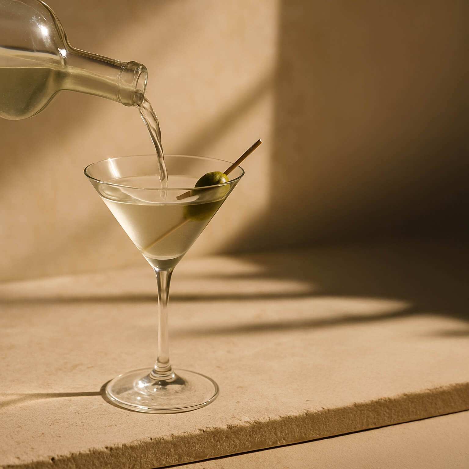 Its olive-led savouriness, tempered by citrus and root, makes it ideal for a dry martini — elegant, balanced, deeply composed.