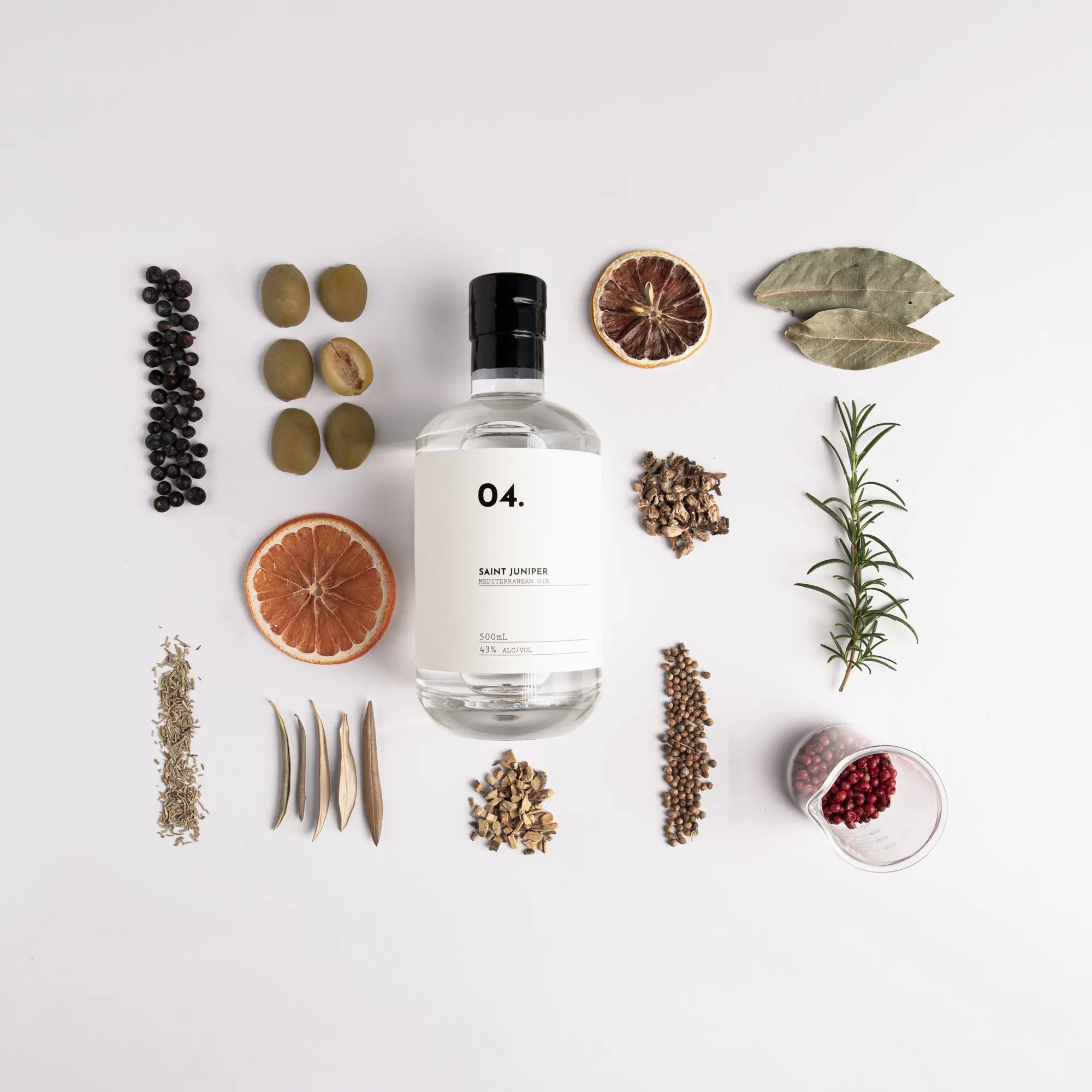 Saint Juniper Mediterranean Gin is our quiet homage to sunlit coasts and savoury stillness. Distilled in small batches using organic botanicals, this spirit carries the warmth of citrus, the depth of green olive, and the clarity of our process.